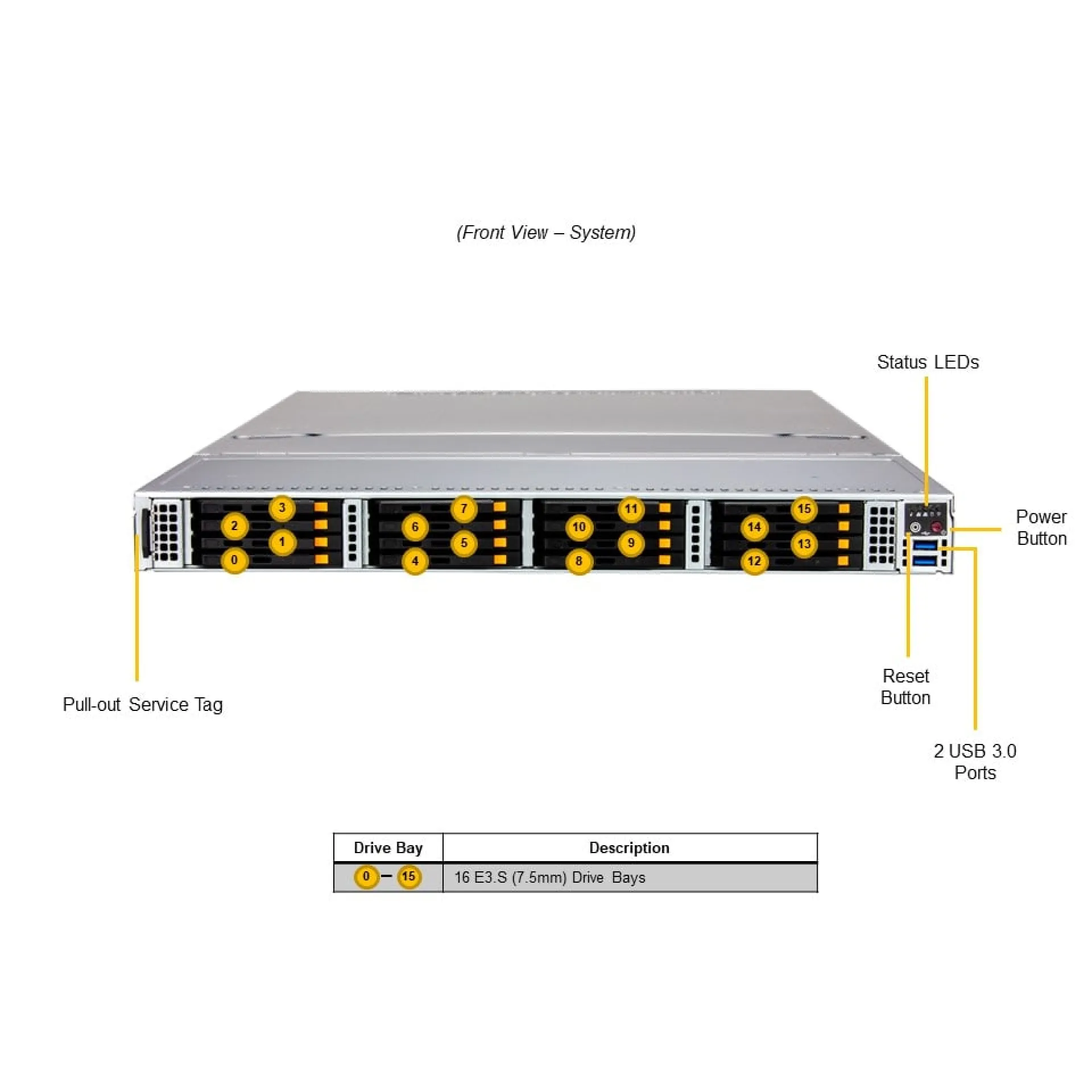 | Sürücü Yuvaları | 16x E3.S NVMe Çıkarılabilir Disk Yuvası |