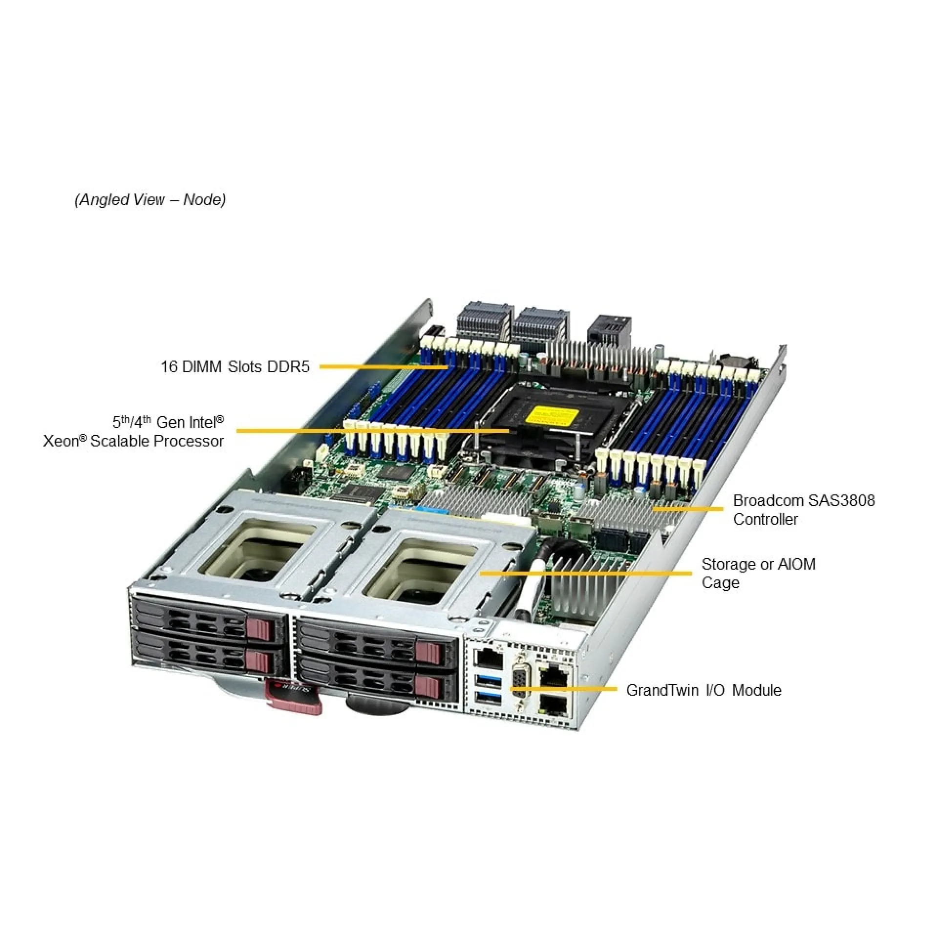 | Bellek | 16x DIMM yuvası ECC DDR5 RDIMM, 4TB'a kadar RAM (düğüm başına) |