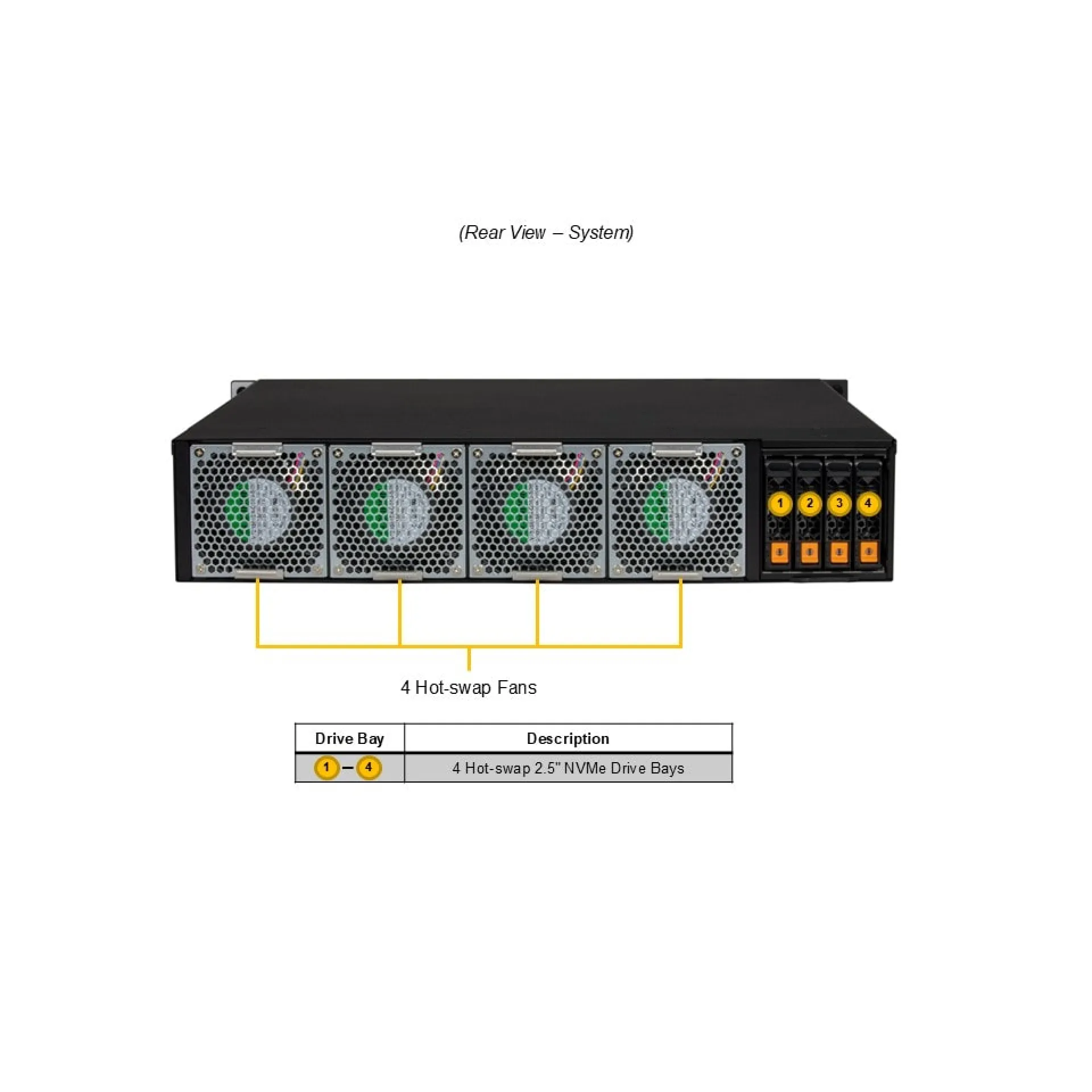 | Sürücü Yuvaları | 4x 2.5" NVMe Çıkarılabilir Disk Yuvası |