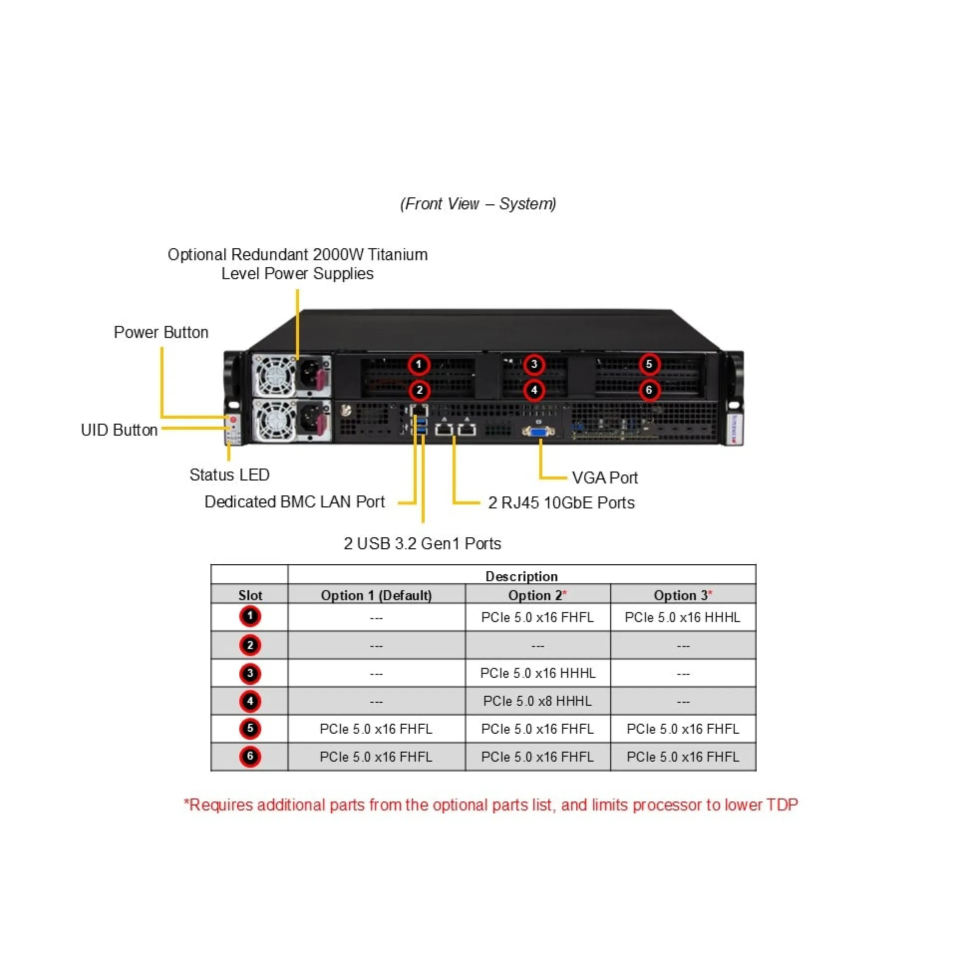 | 212B-FN2T | Tek Intel Xeon 6500 w/ P-cores / Xeon 6700 w/ E-cores / Xeon 6700 w/ P-cores İşlemci, 4x Hot-Swap Disk Yuvaları, 2x PCIe, 2x 2000W Yedekli PSU | |