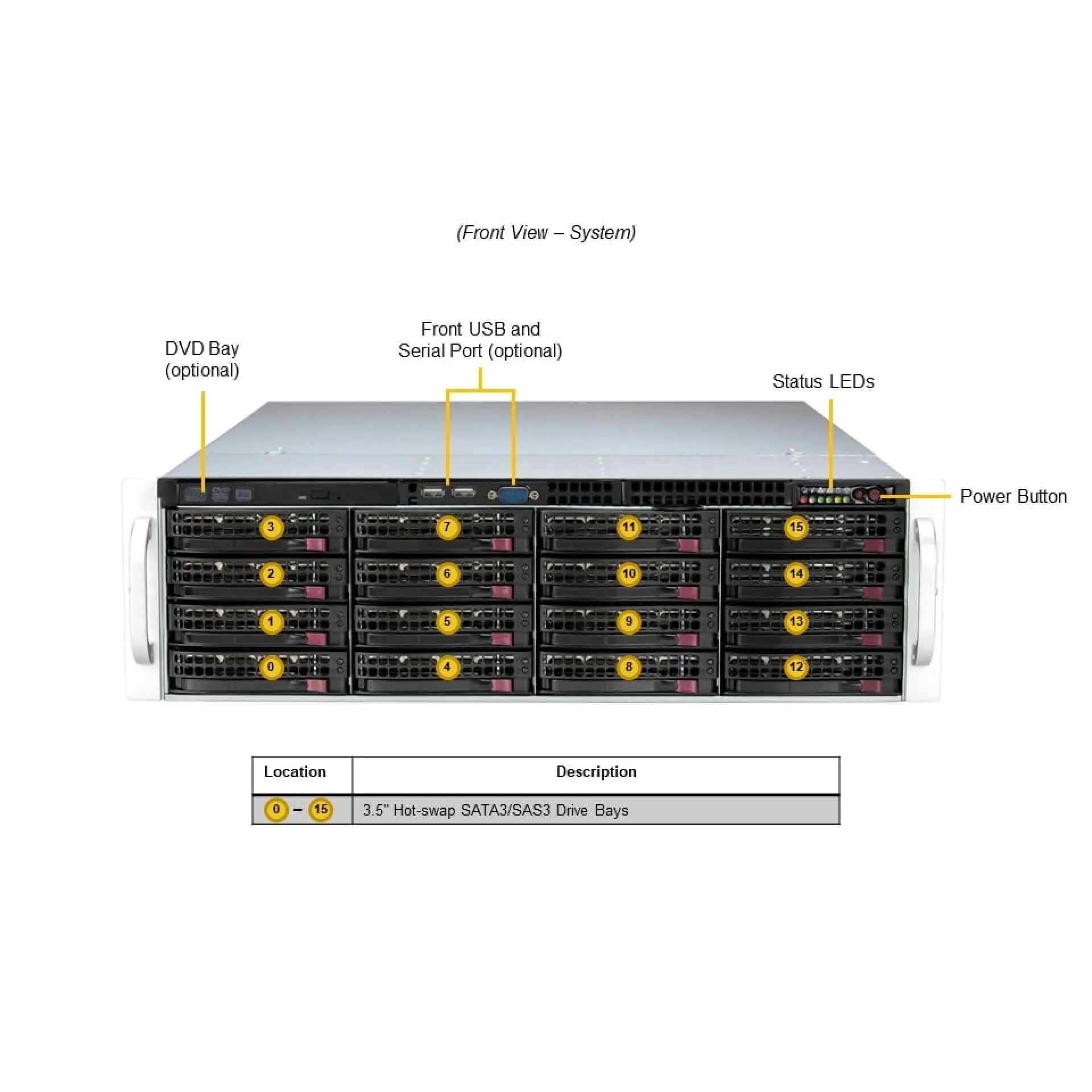 | Not | Ön Panel LED HDD etkinliği Ağ etkinliği Güç durumu Sistem bilgileri (aşırı ısınma/UID) Düğmeler Aç/Kapat |