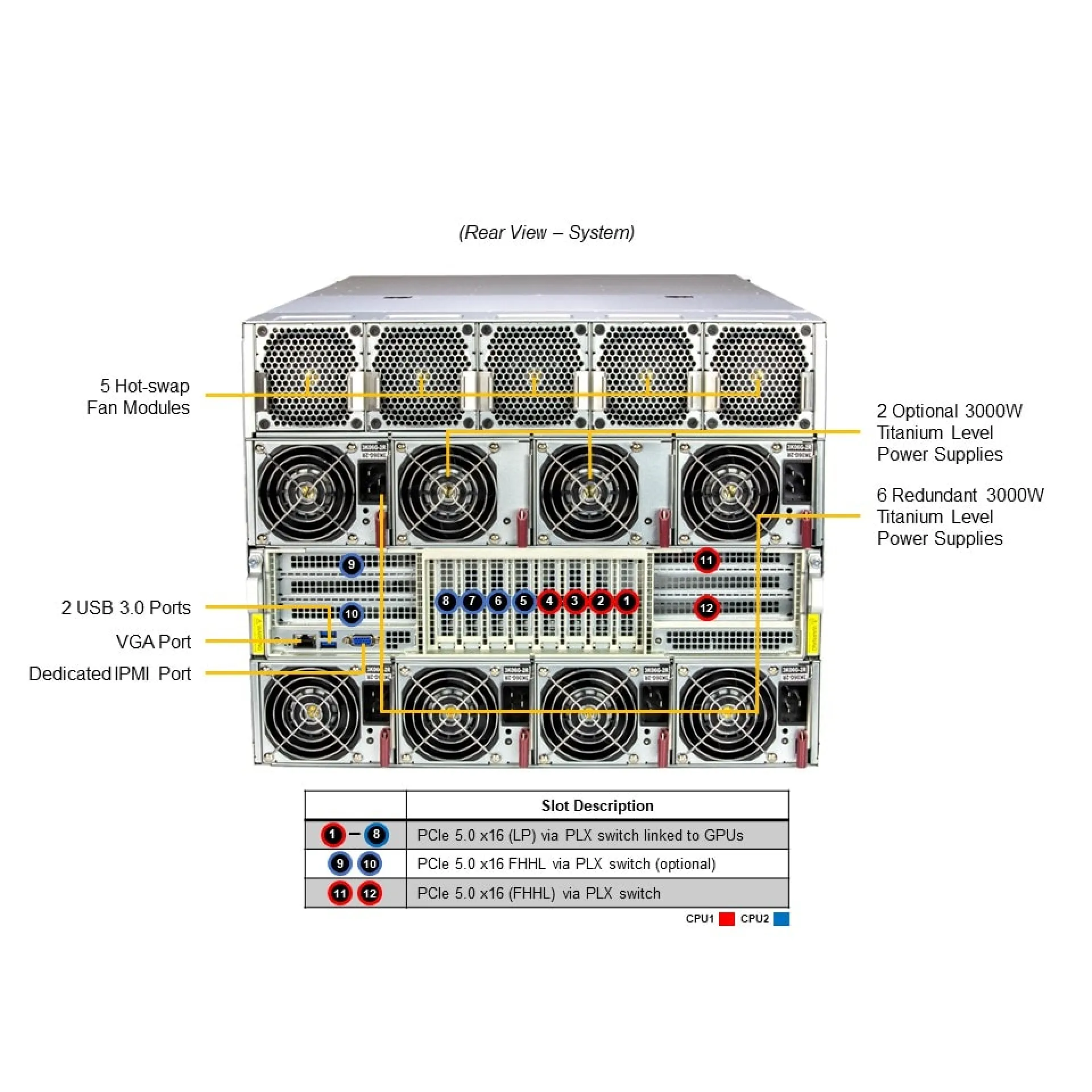 | Dual Intel Xeon 5. veya 4. Nesil Ölçeklenebilir CPU'lar, 20x 2.5" sıcak takas sürücü yuvası, 10x PCIe (8x LP, 2x FHHL), 2x SFP28 25GbE + 2x 10GbE RJ45, 6x 3000W yedekli PSU |