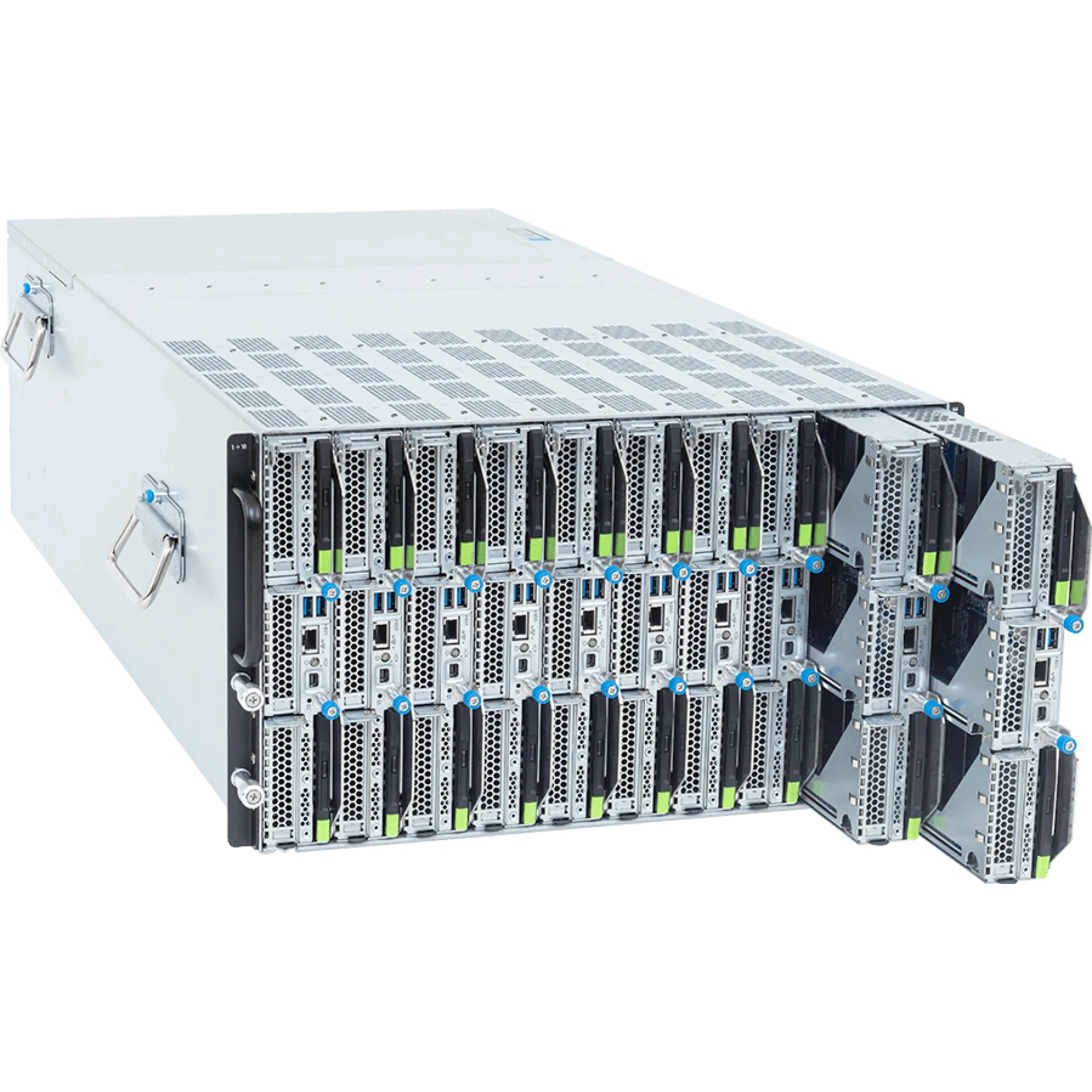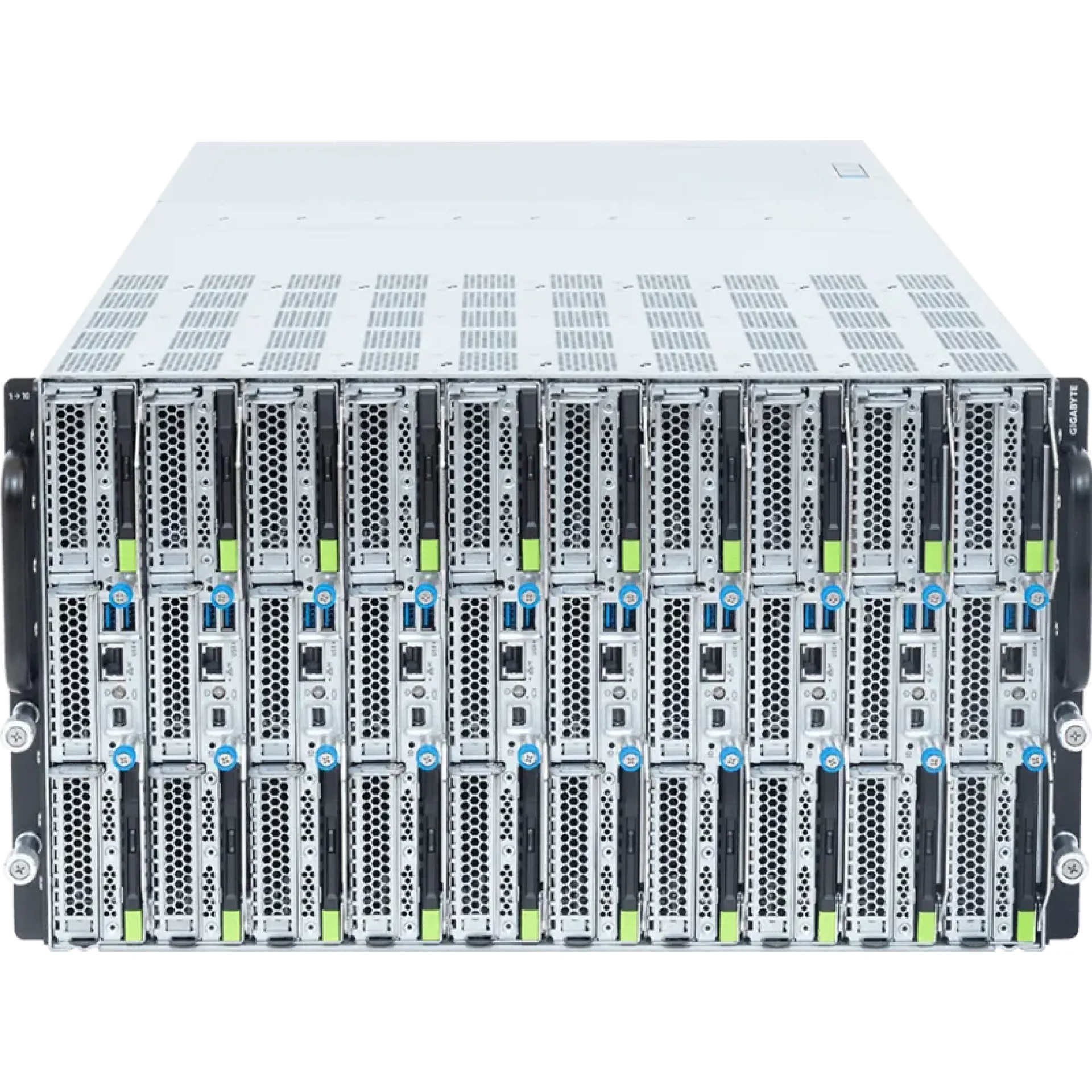 Gigabyte B683-Z80-AAS1'i tanıtıyoruz, modern veri merkezlerinde işleme kapasitesini maksimize etmek için tasarlanmış güçlü bir 6U blade sunucu platformu. Tek bir kasada on bağımsız çift soketli düğümü entegre eden bu gelişmiş sistem, büyük ölçekli bulut ortamları, sanallaştırma kümeleri ve yüksek performanslı bilgi işlem dağıtımlarına özellikle uygun hale getirerek ölçeklenebilirlik, depolama performansı ve enerji verimliliğinin etkileyici bir dengesini sunar. Sistem içindeki her düğüm, yüksek talep gören kurumsal ve HPC iş yüklerini yönetmek için önemli çekirdek sayıları ve gelişmiş hesaplama yetenekleri sağlayan çift AMD EPYC™ 9005 veya 9004 serisi işlemcilerle donatılmıştır. On iki kanallı DDR5 bellek mimarisini ve düğüm başına yirmi dört DIMM yuvasını destekleyerek, veri yoğun uygulamalar, dağıtılmış hesaplama çerçeveleri ve yüksek yoğunluklu sanallaştırma için sorunsuz bir performans sağlayarak olağanüstü bellek bant genişliği ve kapasitesi sunar.