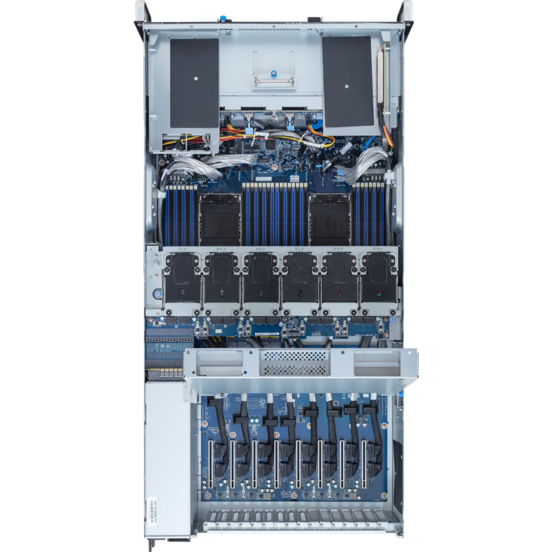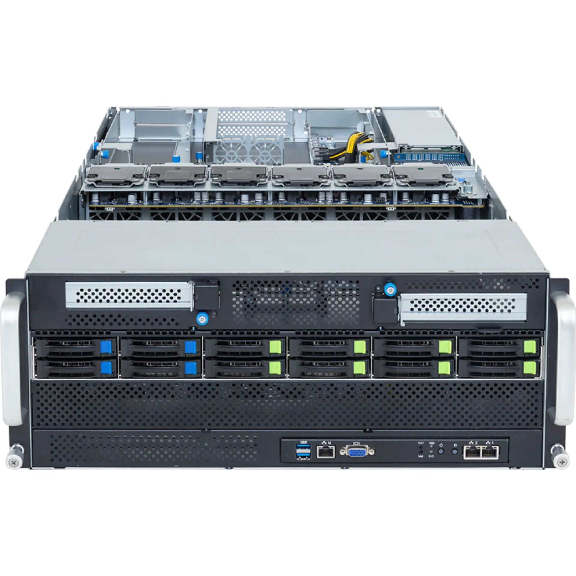 | Çift Intel Xeon 6 CPU, 12x 2.5" hot-swap sürücü yuvası, 2x 10GbE LAN, 9x PCIe (1x FHHL, 8x GPU için FHFL), 4x 3000W yedekli PSU |