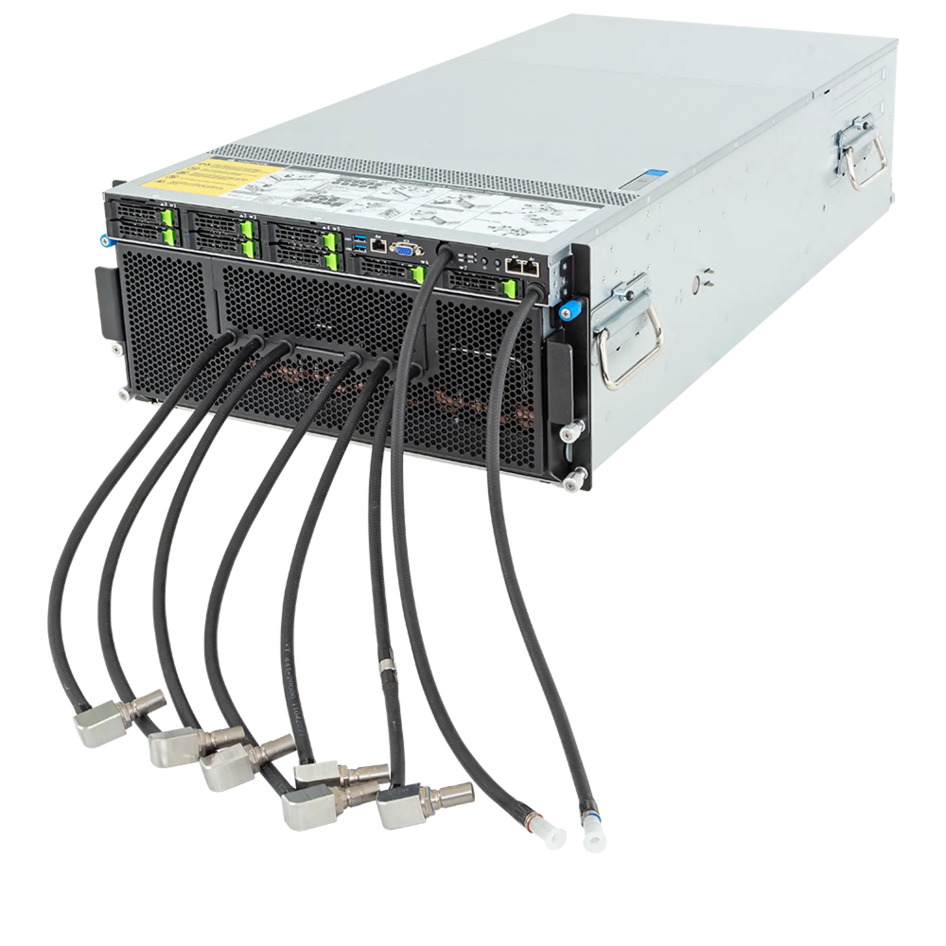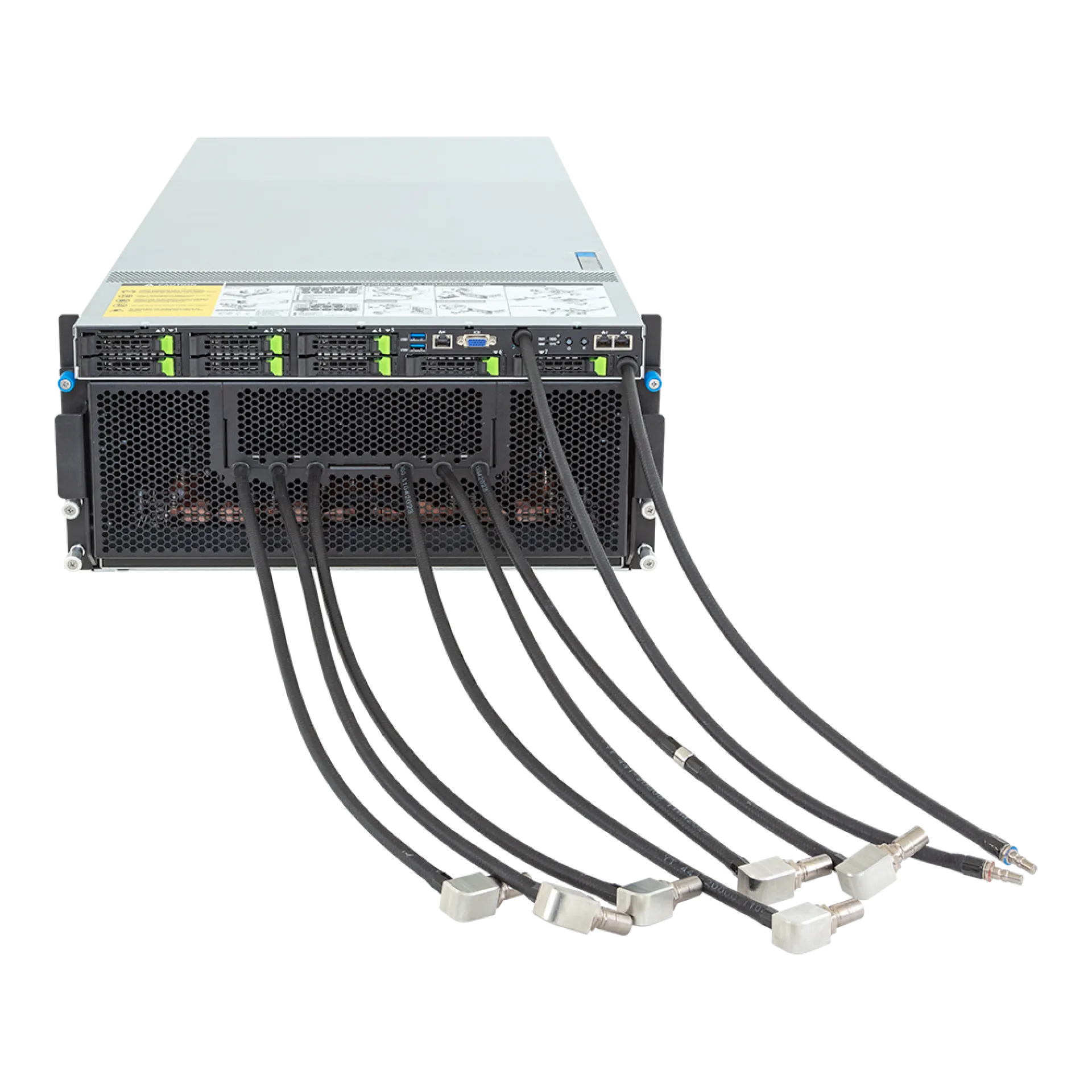 | Çift Intel Xeon Ölçeklenebilir 5./4. Nesil CPU, 8x 2.5" hot-swap sürücü yuvası, 2x 10GbE LAN, 8x GPU, 12x PCIe (8x LP, 4x FHHL), 6x 3000W yedekli PSU |