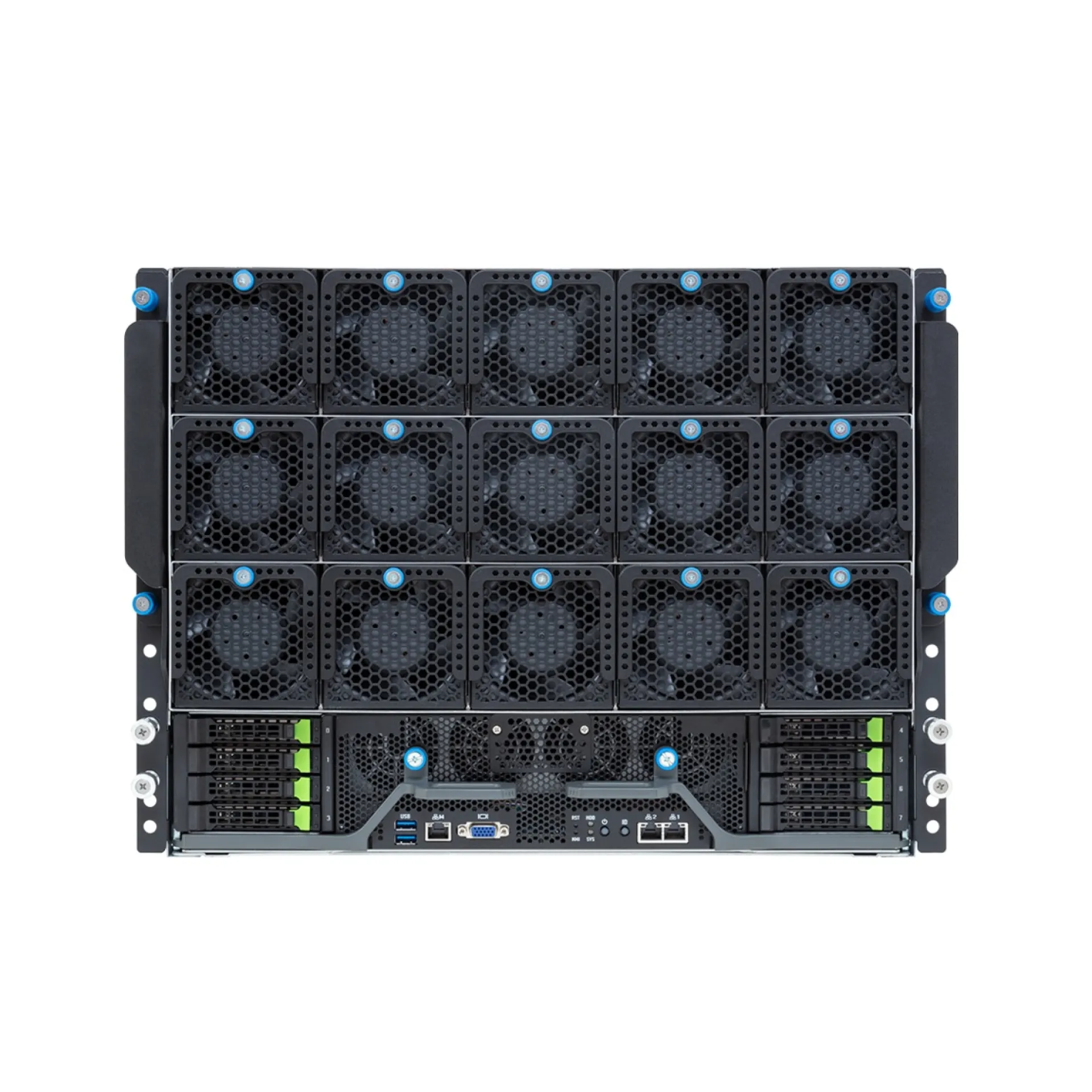 | Sistem Fanları | Anakart: 2 x 60x60x56mm (24,600/24,200rpm) 4 x 60x60x76mm (21,800/20,500rpm) PCIe yuvaları: 4 x 80x80x56mm (15,500/14,900rpm) GPU tablaları: 15 x 80x80x80mm (19,600/15,600rpm) | |