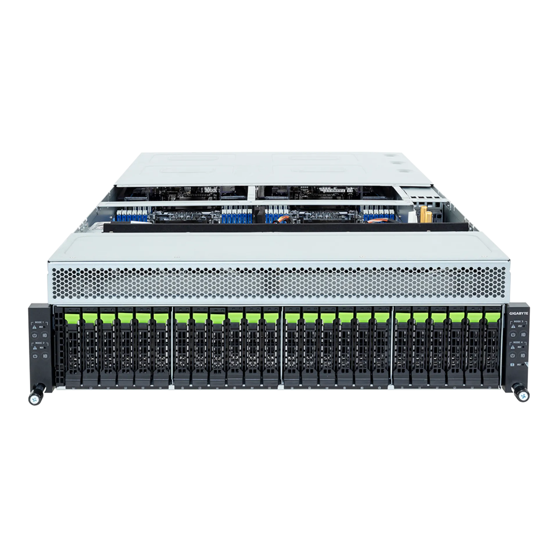 Uyarlanabilirliğini daha da artıracak şekilde, sunucu, her düğümde ağ oluşturma, hızlandırma veya depolama gereksinimleri için özelleştirilebilir genişleme sağlayan 16x düşük profilli PCIe Gen5 x16 yuvası içerir. Üçlü 3000W 80 PLUS Titanium yedekli güç kaynakları, istikrarlı ve verimli güç sağlarken, Gigabyte'ın sunucuya özel termal ve yönetim teknolojileri, yüksek yoğunluklu, yüksek talepli ortamlarda bile sorunsuz çalışmasını sağlar.