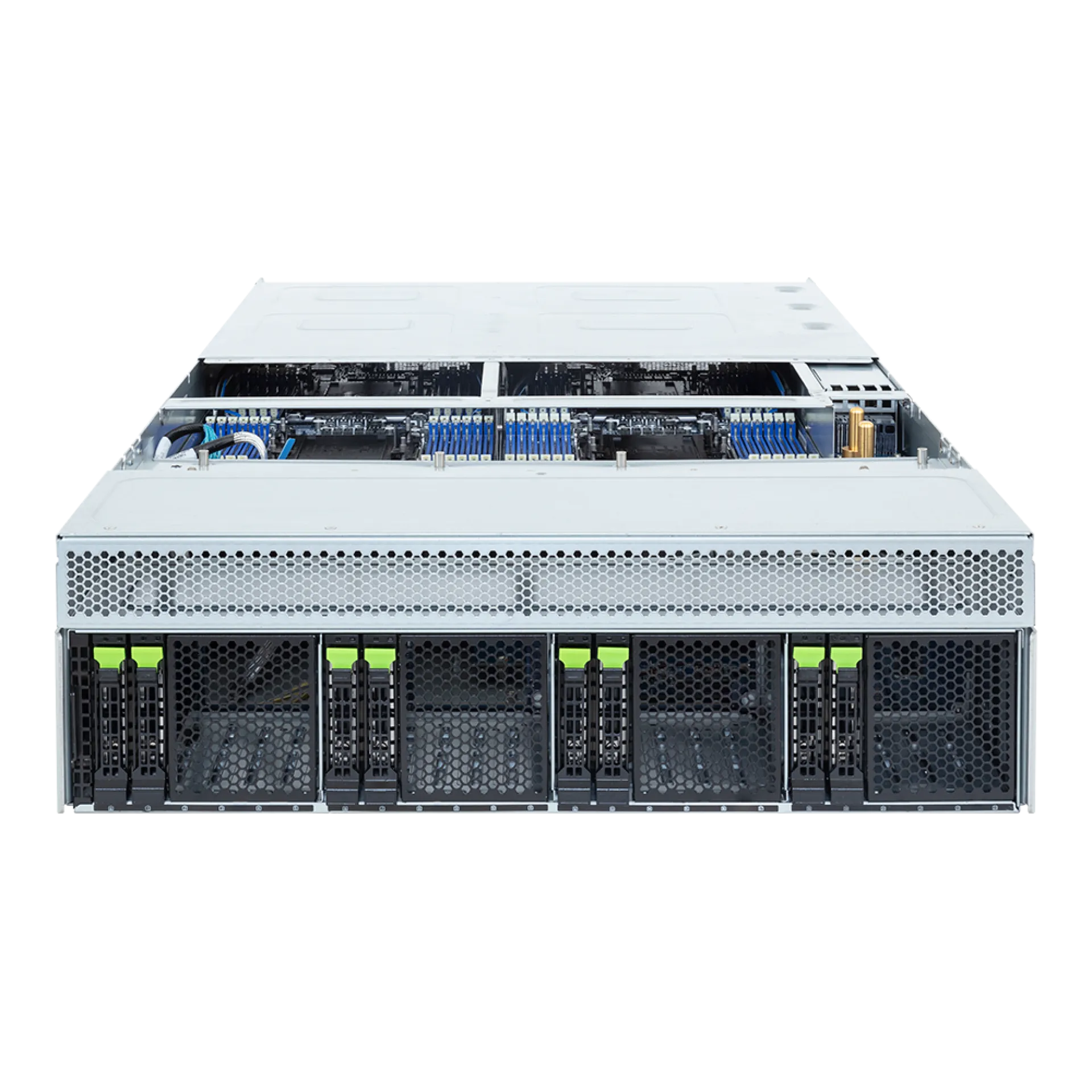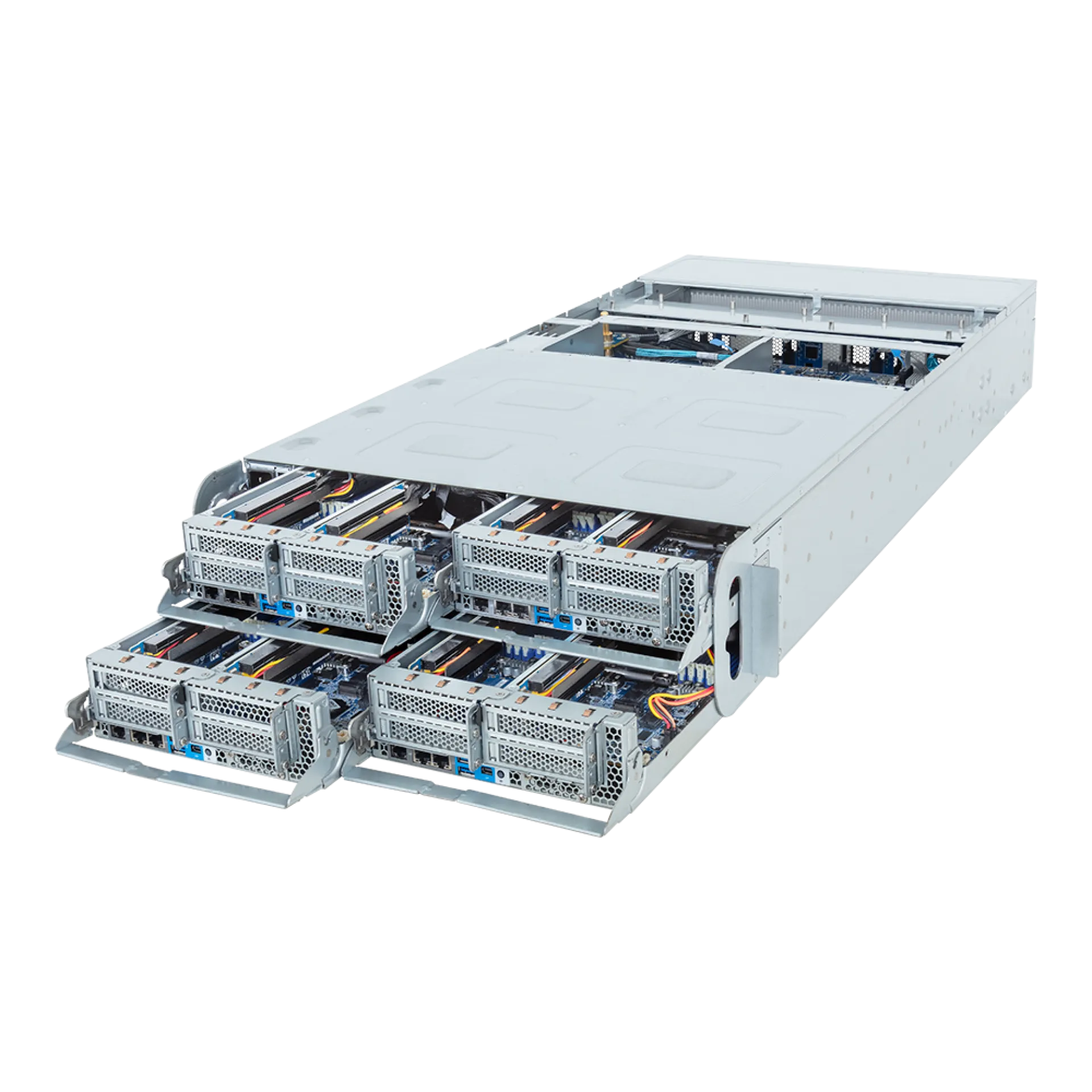 | Çift Intel Xeon 6 CPU, 4 Düğüm, 2x 2.5" hot-swap sürücü yuvası, 4x PCIe (4x LP), 3x 3000W yedek PSU |
