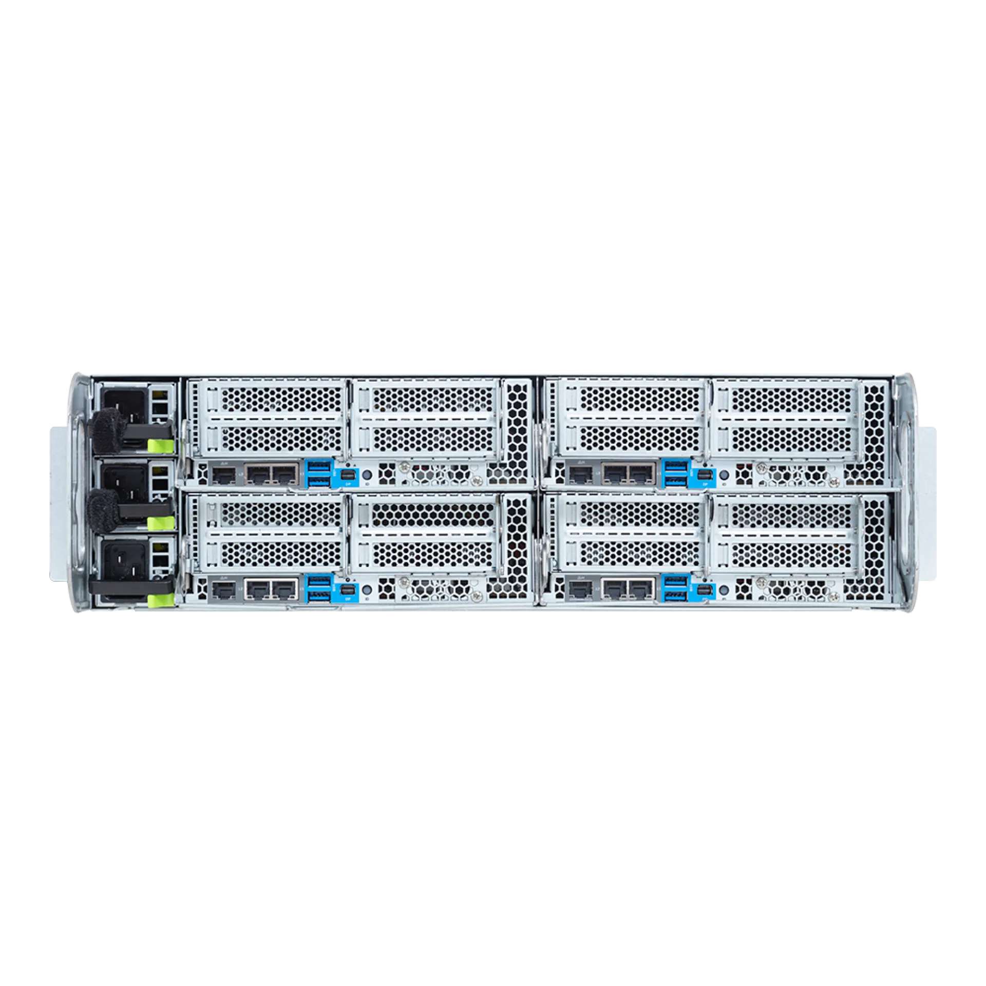 | Üst G/Ç | G/Ç kartı - CLNP319 x 4: 8 x USB 3.2 Gen1 port (Type-A) 4 x Mini-DP 8 x RJ45 port 4 x MLAN port 4 x LED'li ID butonu 4 x Sistem durumu LED'leri | |